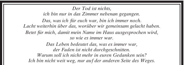 Mein Ziel in der Trauerarbeit ist, meinen Patienten beim Umgang mit Schmerz und tiefer Traurigkeit zu helfen. Ein weiteres Ziel in der therapeutischen Arbeit ist es, Zeit für Trauer zu ermöglichen und den Betroffenen zu helfen, die Hilflosigkeit in der Trauerphase zu überwinden. Ich gebe Hilfestellung, gut ins alltägliche Leben zurück zu finden, dem Leben wieder einen Sinn zu geben und mit dem Verlust umgehen zu können. Die Anerkennung der Realität, die Verleugnung des Verlustes und die Abwehr von Schmerz und Trauer durch das Zulassen von Trauer und tiefer Traurigkeit.
